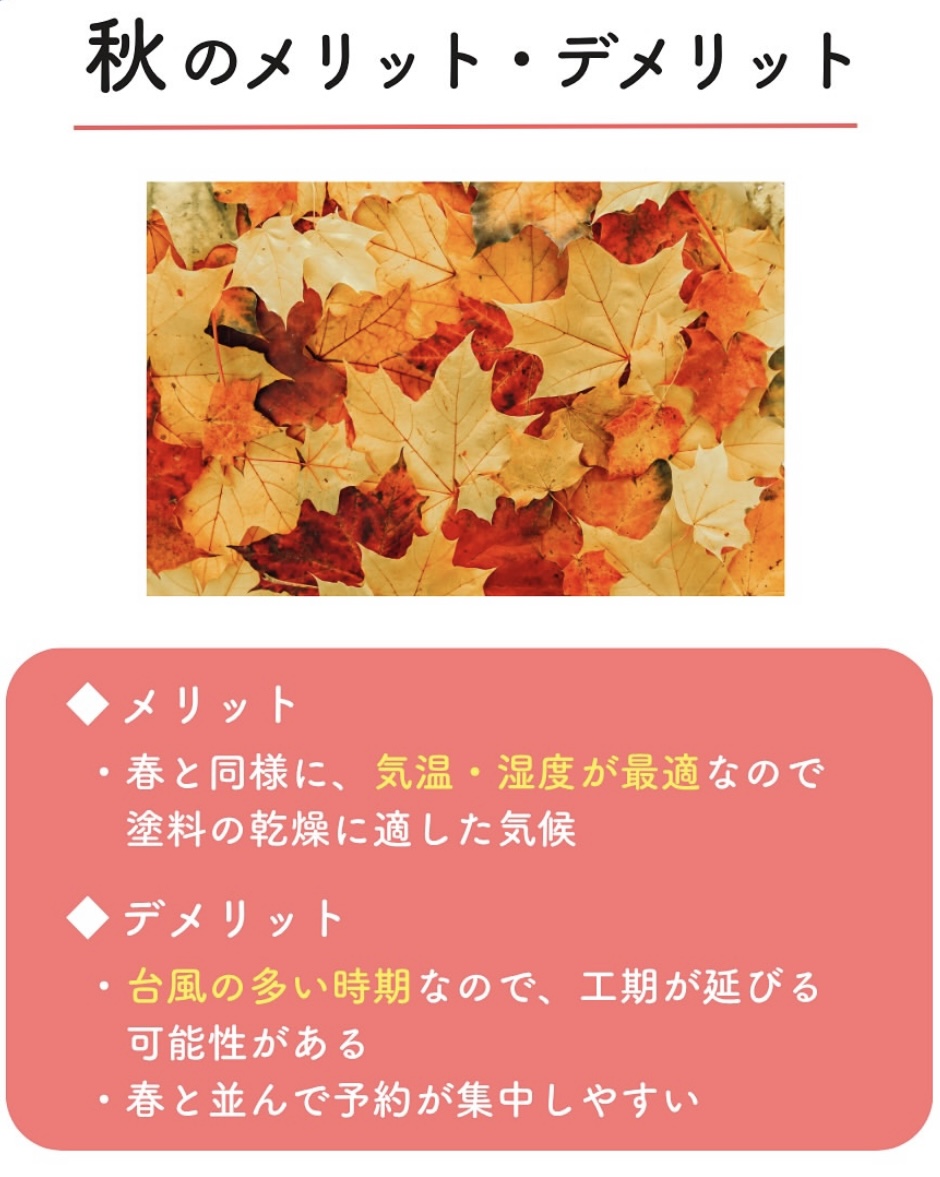 実はこの“秋”こそ、外壁塗装にとってとても良い時期なんです!⭕️